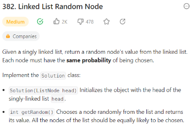 분류: [Linked List, Reservoir Sampling, Randomized, Math]