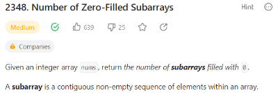 https://leetcode.com/problems/number-of-zero-filled-subarrays/
