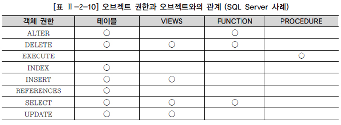 - 테이블과 뷰, 데이터베이스 작업을 대상으로 정의할 수 있으며