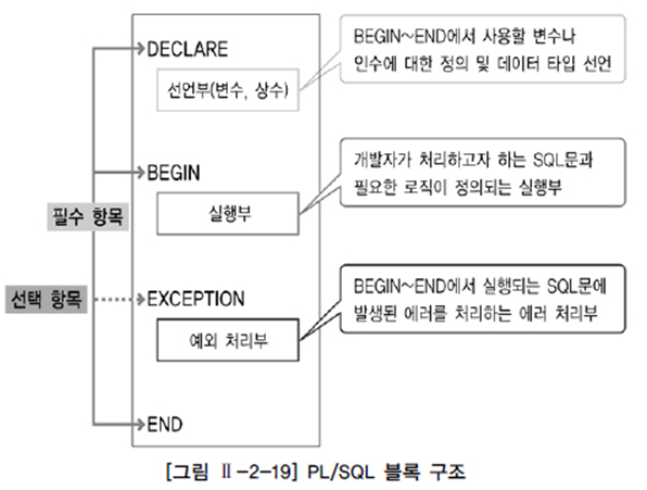 4) 에러처리를 담당하는 EXCEPTION에는 WHEN ~ THEN 절을 사용하여 에러의 종류별로 적절히 처리