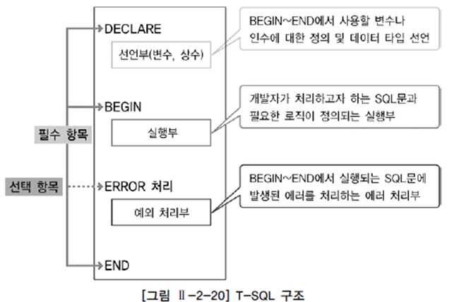 - 흐름 제어 기능 IF/ELSE, WHILE, CASE/THEN 사용이 가능