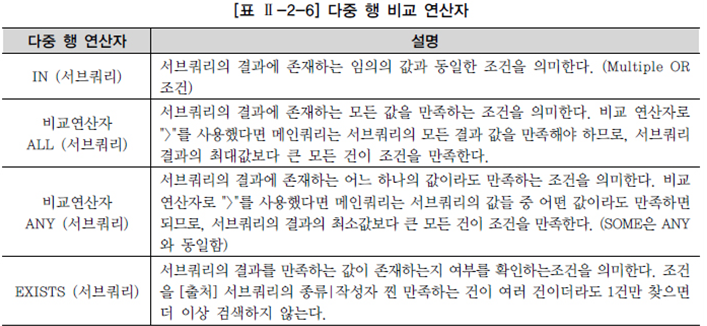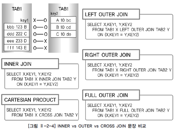 - INNER JOIN/ NATURAL JOIN/ USING 조건절/ ON 조건절/ CROSS JOIN./OUTER JOIN