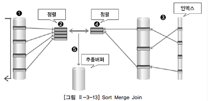 - 조인 칼럼을 기준으로 데이터를 정렬하여 조인 수행/ 스캔방식으로 읽음