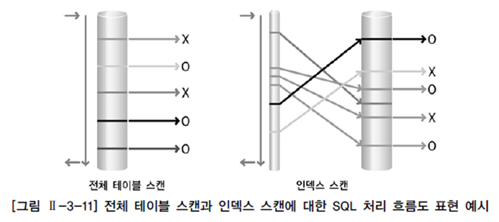> 엑세스 기법 - 하나의 테이블을 엑세스할 때 사용하는 방법 ( 인덱스 스캔, 전체 테이블 스캔)