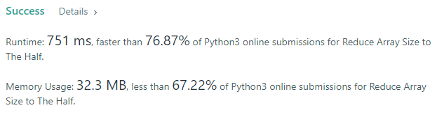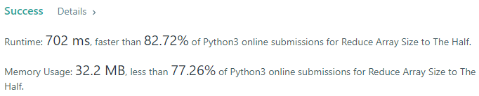 [python3] 1338. Reduce Array Size to The Half 본문