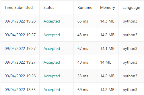 신기하게도 실행할 때마다 런타임시간과 메모리사용량이 변동이 심했다. 따라서 별로 좋지 못한 알고리즘을 짠 것으로 보인다.