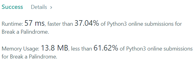 palindromic한 문자열이 주어지면 이를 1개의 문자를 바꿔서 깨트리면 되는데 모든 경우의 수 중 사전적으로 가장 앞에 나오는 문자열을 반환하는 문제이다.