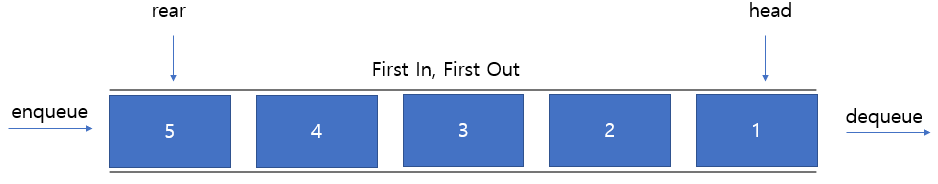 멤버변수: rear(새로운 element가 들어가는 위치) head(element가 나가는 위치)
