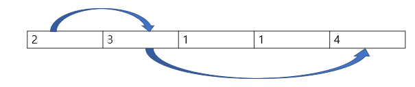 아래의 그림을 보면 알 수 있다. 아래의 배열이 주어졌을 때 2번의 이동으로 배열의 맨 끝까지 이동이 가능하다.