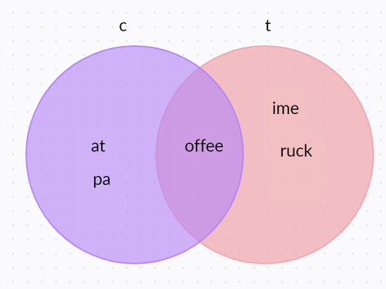 우선 c와 t로 시작하는 집합의 벤다이어그램을 그려보면 이렇게 그려질 것이다.