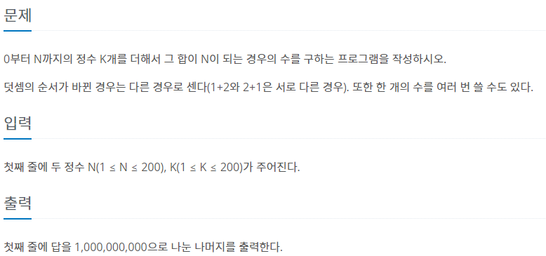 → 중복조합을 사용하면 된다..N+1HK-1 = N+K-1CK-1 = N+K-1CN