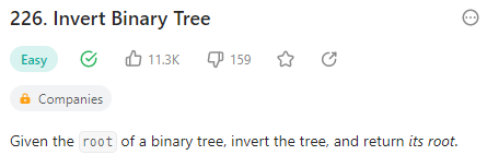이진트리의 root가 주어졌을 때 tree의 모든 노드의 좌우 위치를 바꾸는 게 문제의 내용이다.