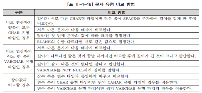 - 8) 테이블명과 칼럼명은 문자로 시작해야 하며 벤더별로 길이에 대한 한계 존재