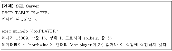 - 테이블을 잘못 만들었거나 테이블이 더이상 필요 없을 경우 해당 테이블을 삭제