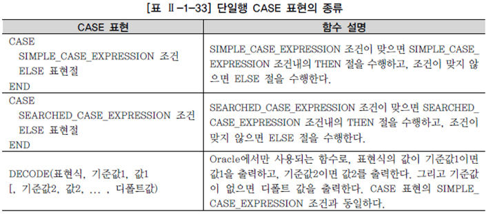 - IF-THEN-ELSE 논리와 유사한 방식으로 표현식을 작성하여 SQL의 비교 연산 기능을 보완하는 특징