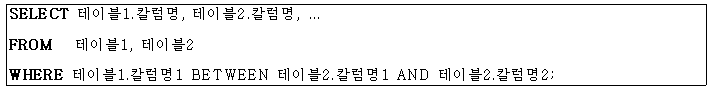 - BETWEEN > < >= <=등 연산자들을 사용하여 JOIN을 수행