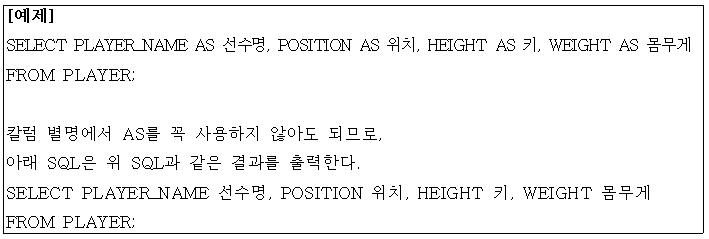 - 테이블을 생성하면서 만들어진 칼럼명을 어떤 이유로 불가피하게 변경해야 하는 경우 쓰임