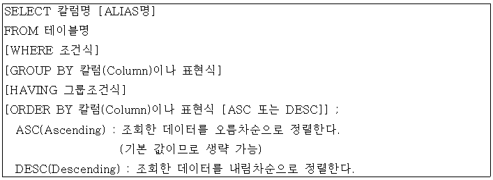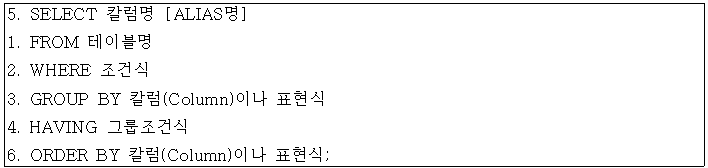 - GROUP BY 절에서는 SELECT 절과 달리 ALIAS 명을 사용할 수 없음