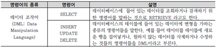 - RDB에서 데이터의 정의, 데이터의 조작, 데이터의 제어를 하기 위해 사용하는 언어