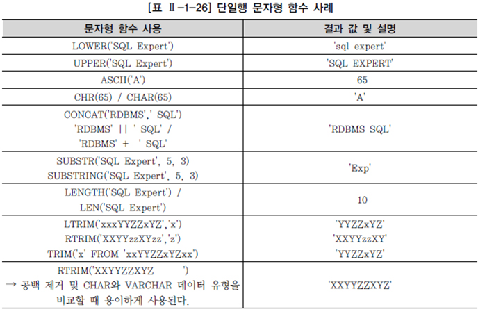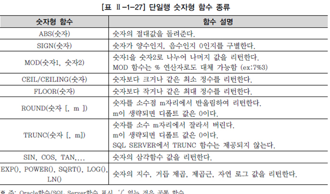 - 몇몇은 문자형 함수의 경우 결과를 숫자로 리턴하는 함수도 있음.