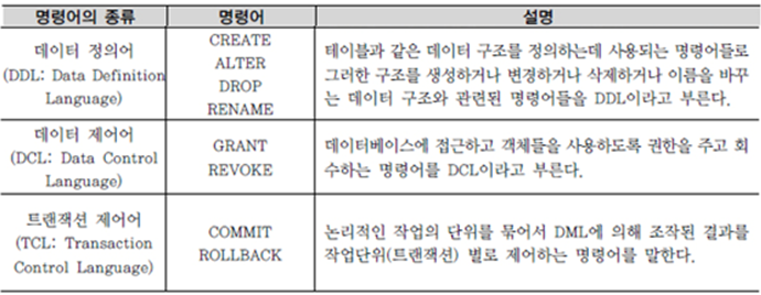 - 테이블을 생성하고 생성된 테이블의 구조를 변경하는 명령어