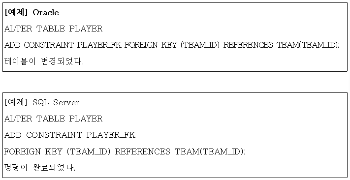 - 테이블 생성 이후에 필요에 의해 제약조건을 추가