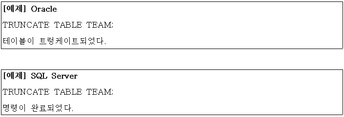 - 테이블의 전체 데이터를 삭제하는 경우 DELETE TABLE보다 TRUNCATE TABLE을 권고
